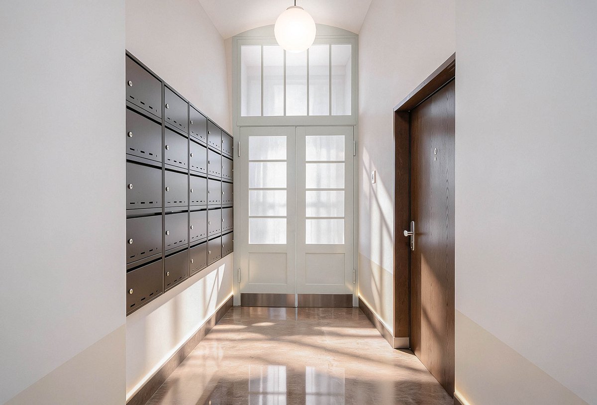 Společné prostory projdou rekonstrukcí ve vysokém standardu a promění se v reprezentativní vstup do domu. Podsvícené schody, benátský štuk do výšky 120 cm a designové osvětlení podtrhnou elegantní a nadčasový charakter. Výsledkem bude prostor, který nastaví atmosféru kvality a výjimečnosti.